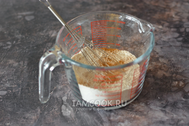 В рабочей миске соедините цельнозерновую муку, соль и корицу. Просто смешайте их венчиком.