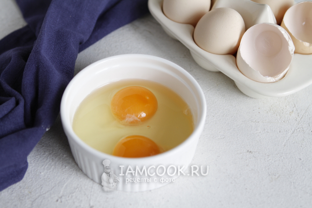 Яйца разбить в миску. Взболтать их вилкой до объединения желтков и белков и слегка посолить.