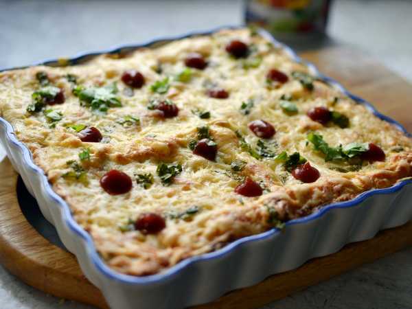 И заливаем запеканку соусом.