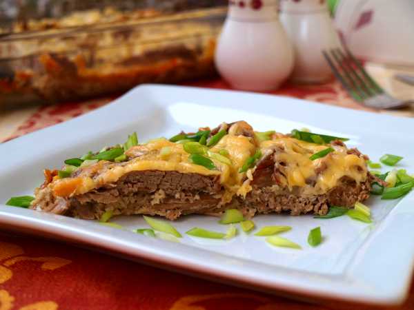 Фото мясной запеканки с голландским соусом.