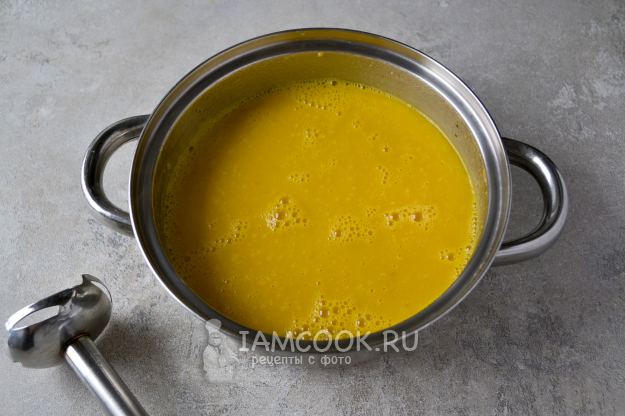 Погружным блендером измельчите содержимое кастрюли до однородной консистенции, без кусочков овощей. Постный картофельный суп-пюре готов.