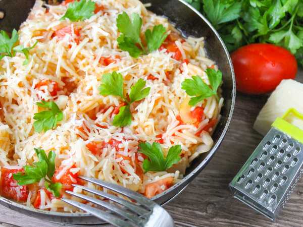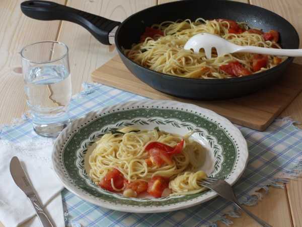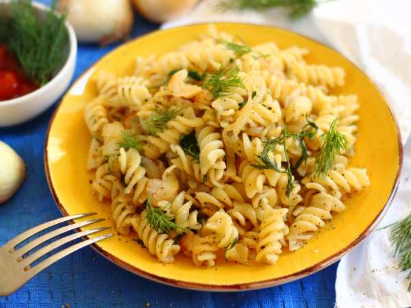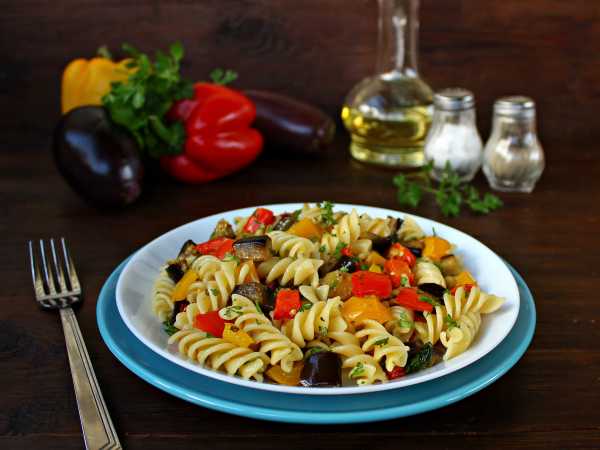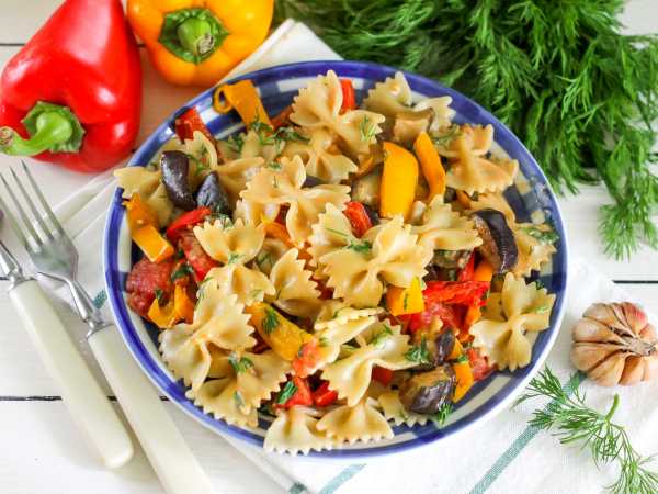 Готовые макароны с овощами выложите в порционные тарелки, чуть присыпьте мелко порубленным укропом и подавайте к столу. Приятного аппетита!