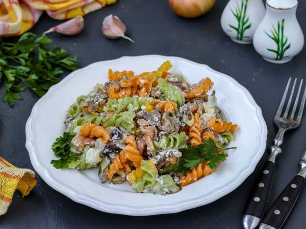 После финального сигнала об окончании программы добавим к овощам макароны, сливочное масло, соль. Перемешаем.