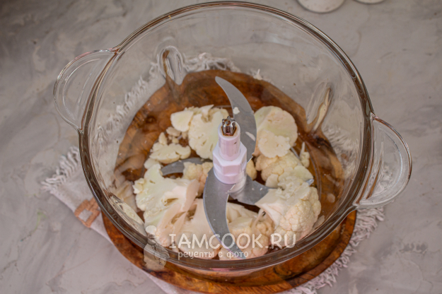 Цветную капусту ополосните и обсушите. Разделите на небольшие соцветия и положите в чашу блендера или измельчителя. Отваривать или подвергать термической обработке другим способом капусту не нужно. Она используется исключительно сырой.