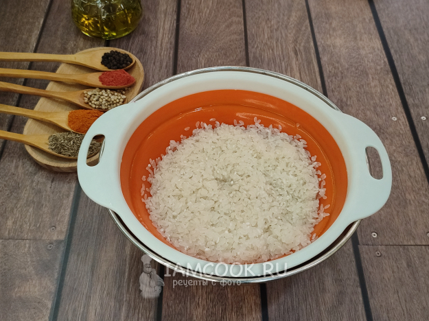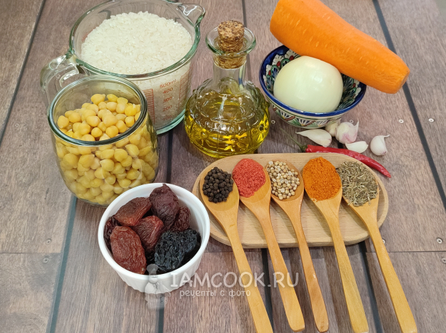 Подготовьте ингредиенты для постного плова с нутом. Нут можно использовать консервированный. Я взяла сухой, замочила с вечера в холодной воде, оставила в холодильнике. Из 120 граммов сухого у меня получилось 230 граммов практически готового к употреблению нута. Многие любят и едят его уже в таком виде, без дальнейшей термообработки, по консистенции он похож на фундук. Я же люблю, когда нут мягкий, поэтому предварительно отварила его в течение 40 минут.