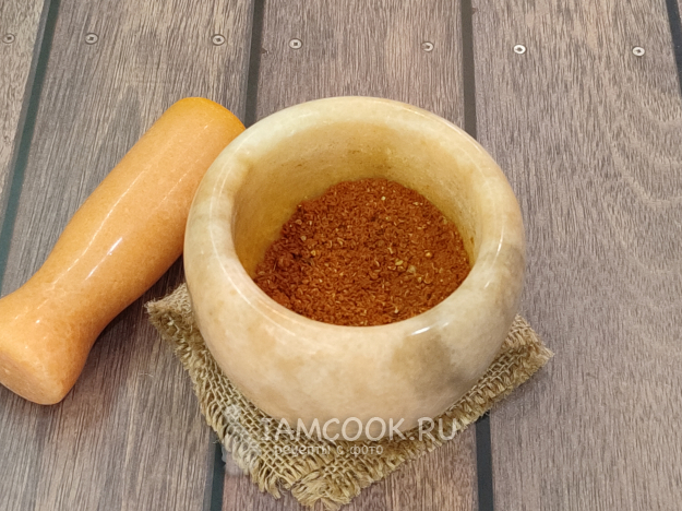 Зиру, перец, кориандр перетираем в ступке, смешиваем с порошковыми специями.