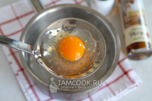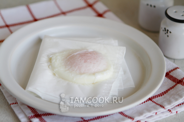 Перед подачей яйцо можно слегка поперчить и разрезать острым ножом.