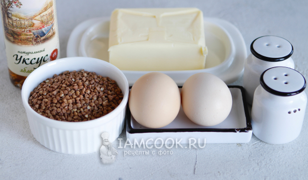 Продукты для приготовления гречки с яйцом пашот - перед вами.