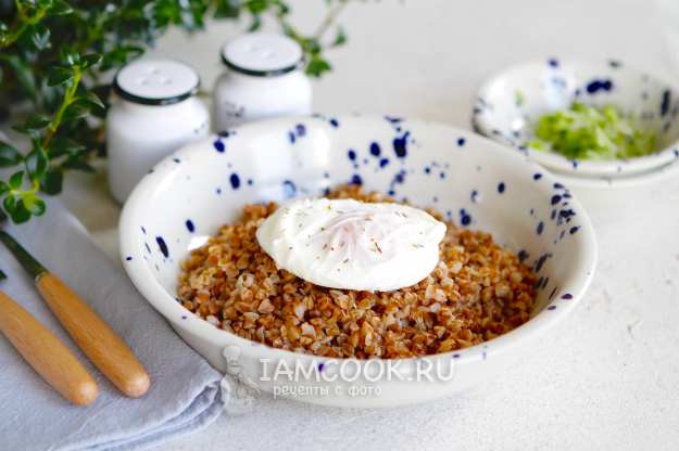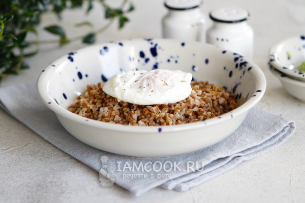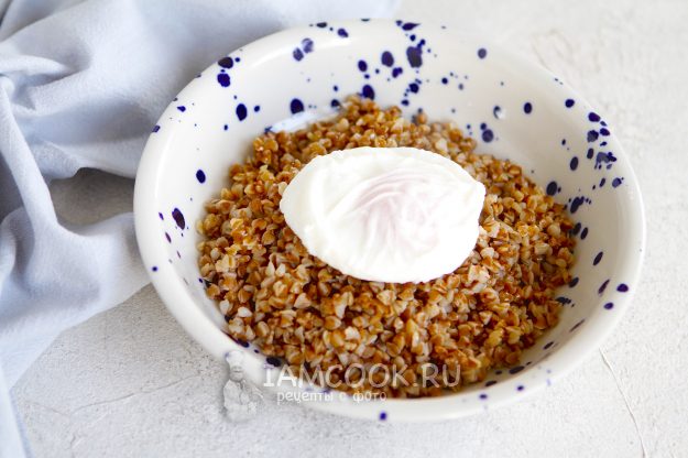 Вкусный, сытный завтрак из гречки с яйцом пашот готов.