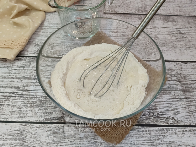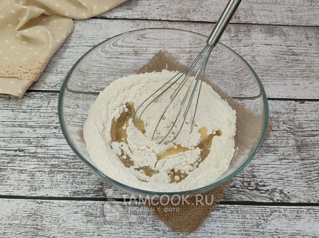Для теста в миску всыпаем муку, разрыхлитель, соль, сахар, перемешиваем.