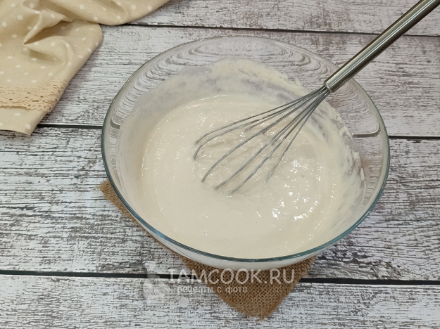 И теперь постепенно вливаем газированную воду, при этом перемешивая венчиком.