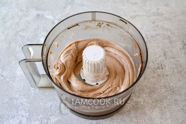 Включите прибор. Замороженные бананы сначала будут превращаться в крошку, поэтому отключайте прибор и соскребайте банановую крошку со стенок чаши. Измельчите крошку до однородной гладкой кремообразной массы. 3-4 минуты и банановое мороженое готово.