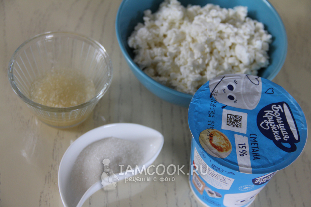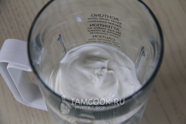 Влить желатин к творожной массе и взбить до однородного состояния.