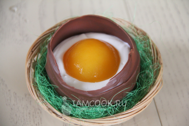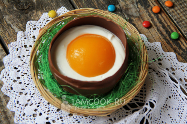 Вот такой красивый, яркий и очень вкусный десерт в виде шоколадного яйца с муссом получился.