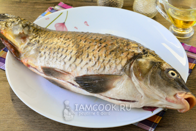 Карпа посолите и поперчите по вкусу. Также можете добавить любые другие специи для рыбы.