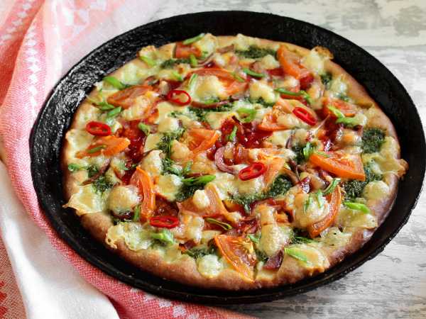 Выпекаем сицилийскую пиццу в предварительно прогретой до 200°С духовке без циркуляции воздуха на среднем уровне 50 минут. Можно с одним поворотом противня.