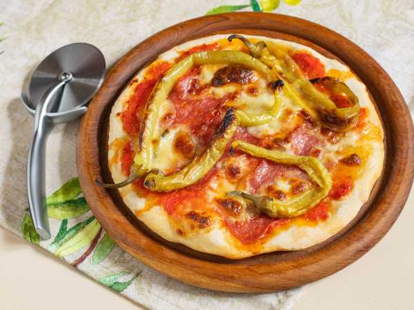 Через 3 часа, когда тесто уже хорошо поднялось, щедро смазываем противень, на котором будем выпекать пиццу, оливковым маслом.