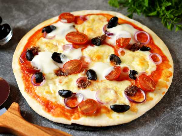 Приготовим по списку ингредиенты для сицилийской пиццы. В этом рецепте три группы ингредиентов: на начало приготовления нужны те, которые для теста; во вторую очередь - для томатного соуса; начинка подключается в последнюю очередь.