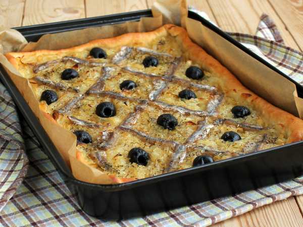 Далее идёт слой томатного соуса. Его можно посыпать каперсами и красиво выложить целеньких анчоусов. Завершает всё слой предварительно обжаренных в оливковом масле панировочных сухарей и орегано.