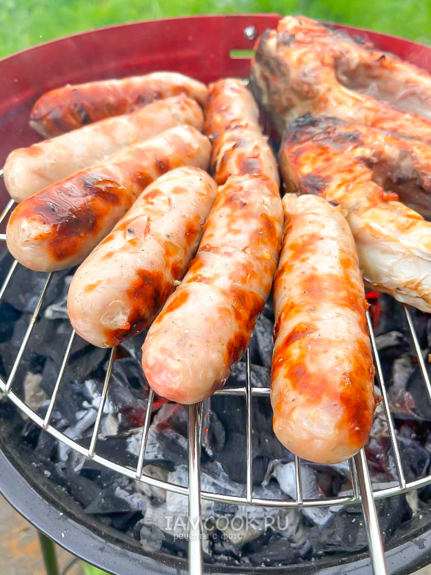 Обязательно равномерно проворачивайте купаты с помощью вилки или шампура, чтобы они приобрели румяную корочку.