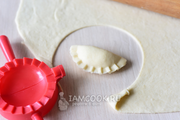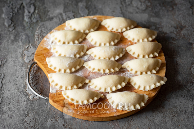 Из всего теста и творожной начинки приготовьте заготовки вареников.