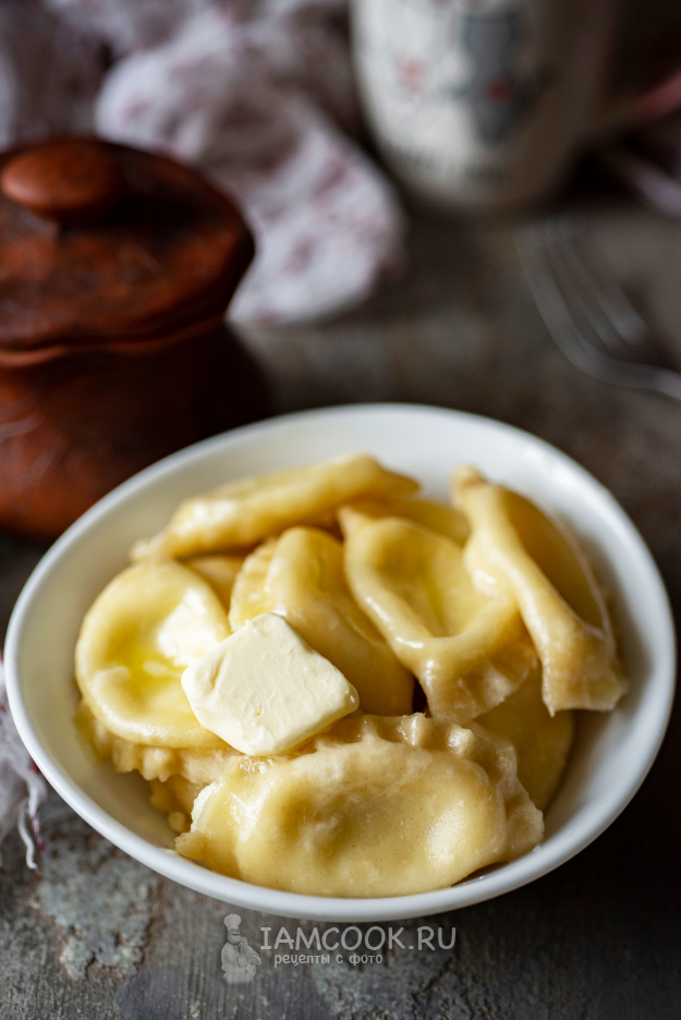 Пышные паровые вареники на кефире с творогом готовы. Выложите их в порционные тарелки, добавьте кусочек сливочного масла и подавайте к столу. Приятного аппетита!