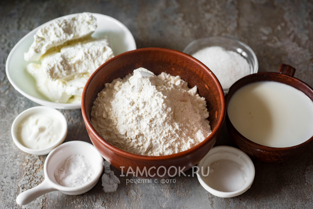 Все ингредиенты для приготовления пышных вареников на кефире с творогом на пару очень удобно подготовить сразу.