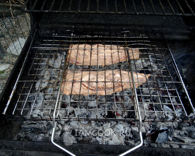 Рыбу можно жарить на решётке или в решётке, за счёт добавления масла она не прилипает.