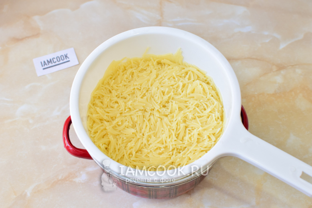 Откиньте вермишель на дуршлаг и пролейте холодной водой. Оставьте, чтобы стекла лишняя вода.