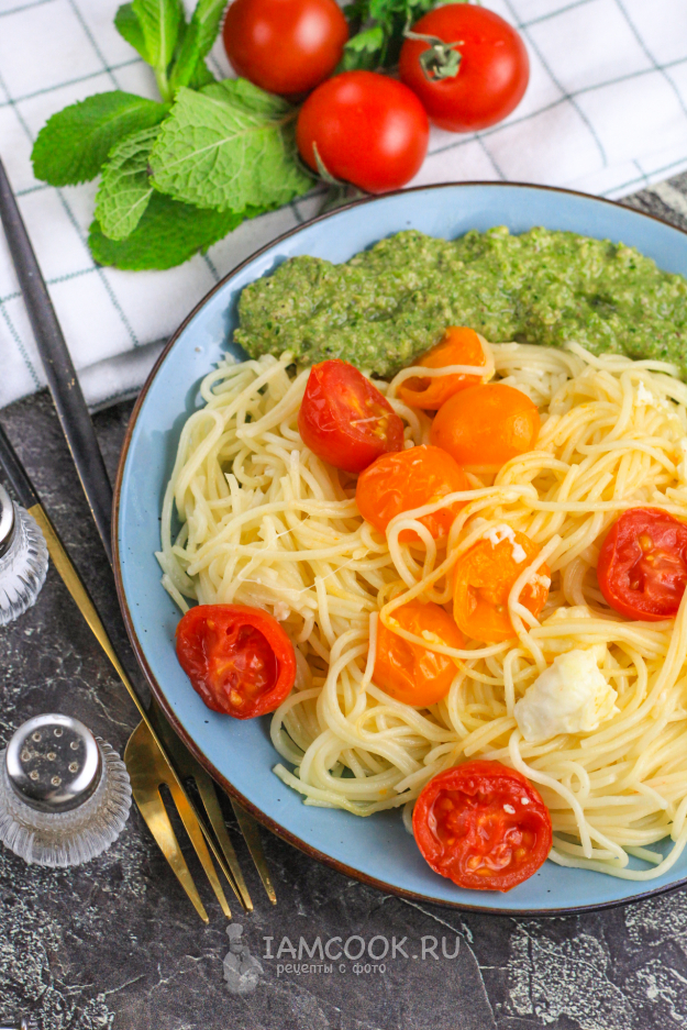 Выложите ее на тарелки и подайте к столу горячей с соусами, например с «Песто».