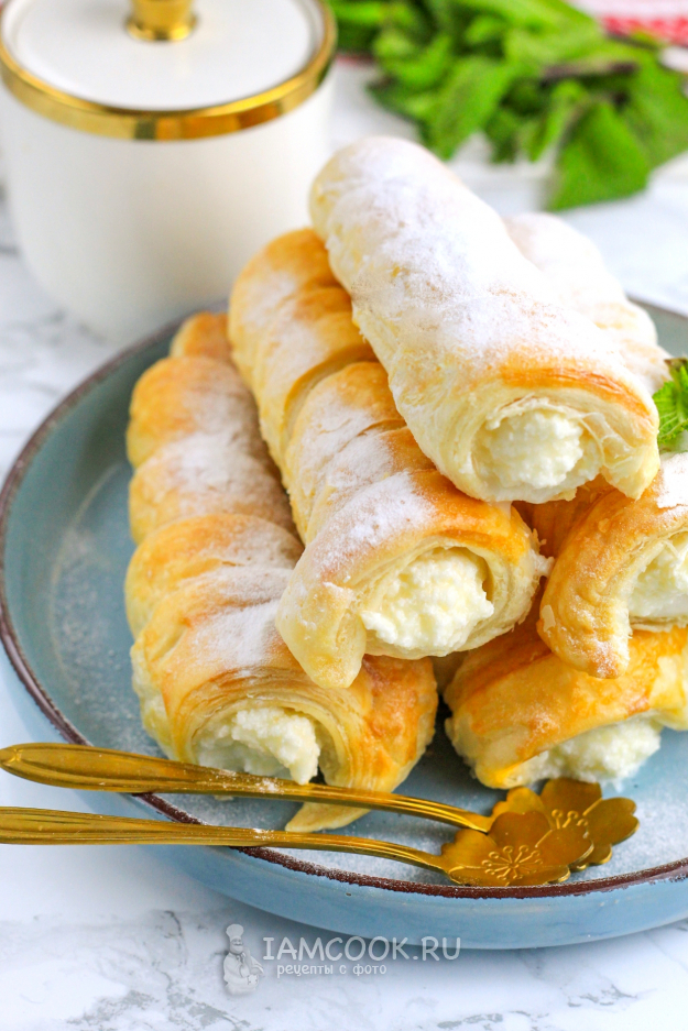 Продукты для приготовления трубочек из слоеного теста с творожным кремом - перед вами!