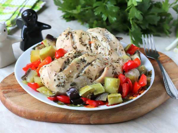 Закройте форму крышкой, поставьте в холодную духовку и готовьте куриные голени ПП примерно 1 час при температуре 180°С, не открывая крышки, чтобы курица с овощами томилась в собственном соку.