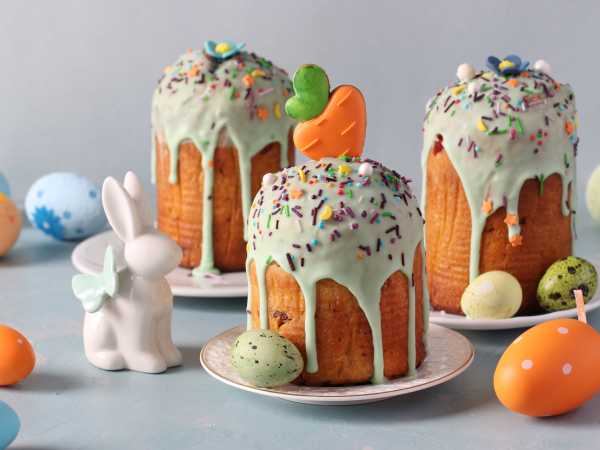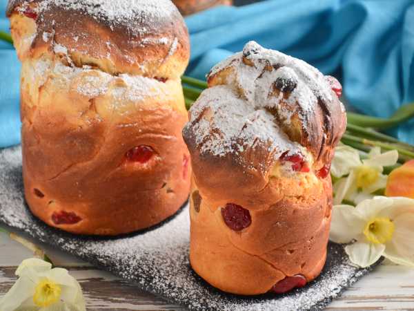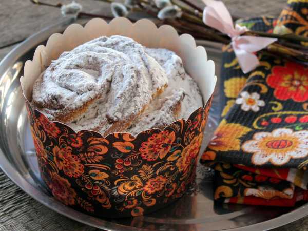 Выложить тесто в формы, заполняя их на 1/2 объема. Дать постоять 15 минут, за это время тесто слегка поднимется. Отправить куличи в разогретую до 160°С духовку. Выпекать постные куличи около 50 минут. Готовые куличи остудить на решетке.