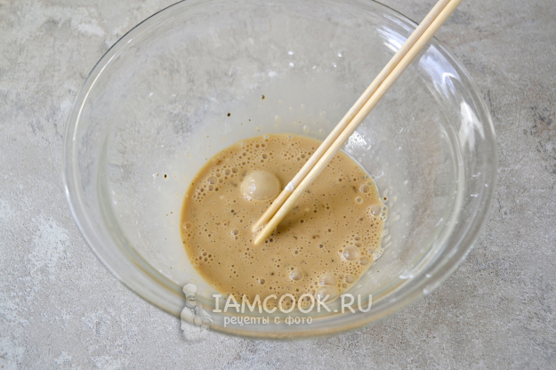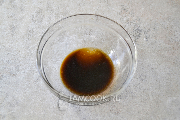 Приготовьте соус. В мисочку налейте соевый соус, положите сахар, соль.