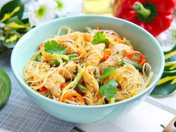 Соберите все необходимые продукты для приготовления макарон с вареной курицей.