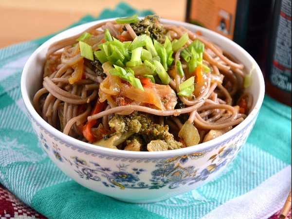 К готовым макаронам верните обжаренный лук-порей и морковь и перемешайте.
