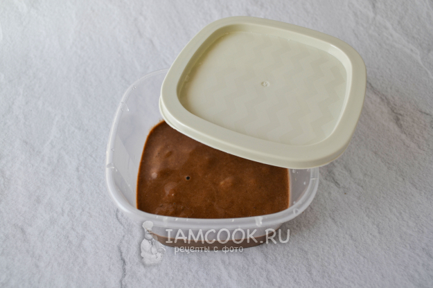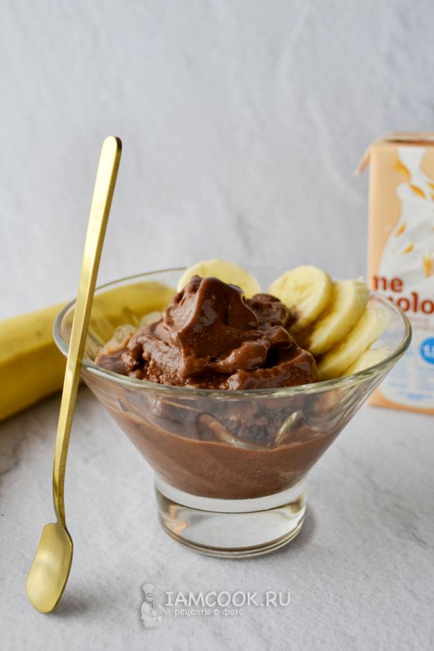 Переложите бананово-шоколадную массу в пластиковый контейнер, закройте его крышкой и поставьте в морозильную камеру.