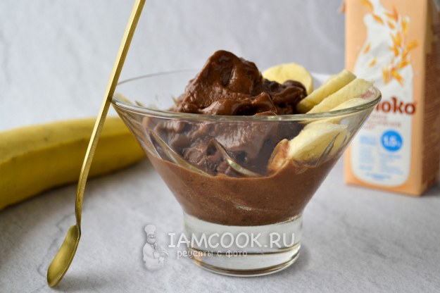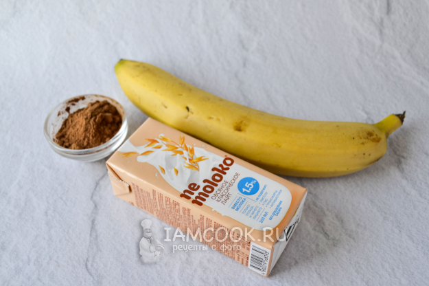 Соберите продукты для приготовления постного шоколадного мороженого на овсяном молоке с бананом. Банан возьмите спелый - он слаще.