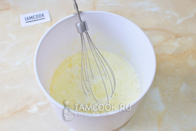 Для теста смешайте яйца с сахаром и щепоткой соли.