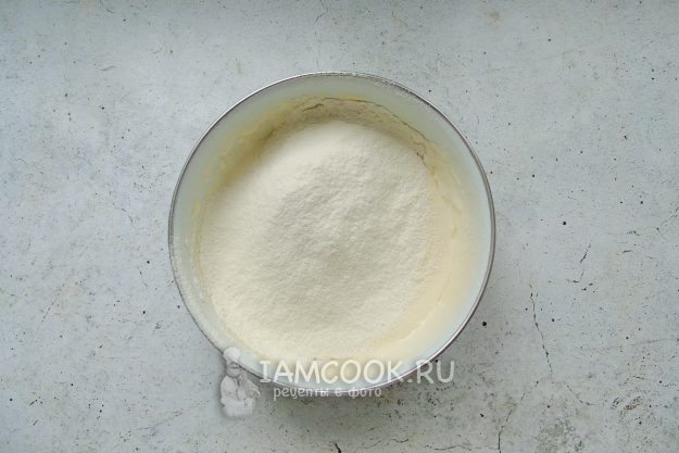 Постепенно добавьте просеянную муку.