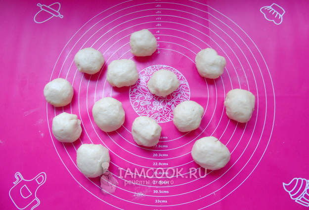 Приготовленное творожное тесто разделите на шарики весом приблизительно 50-60 граммов.