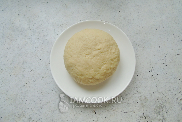 Сначала ложкой перемешивайте тесто в миске. А когда оно станет густым, выложите на стол, присыпанный мукой. Замесите мягкое, эластичное, не липнущее к рукам тесто. Накройте его пленкой или полотенцем и дайте отдохнуть 30 минут.