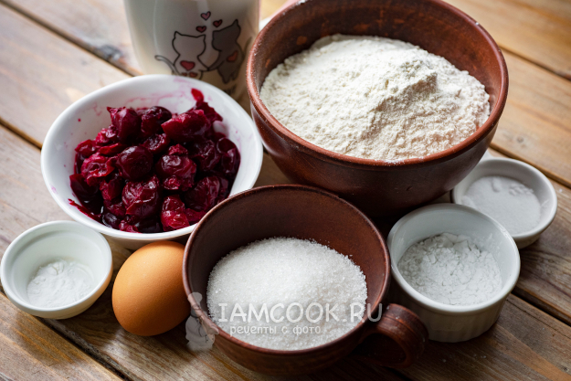 Все ингредиенты для приготовления вареников по-полтавски выложим на стол по списку. Если у вас замороженная вишня, как у меня, то ее следует разморозить заранее и слить излишнюю жидкость.