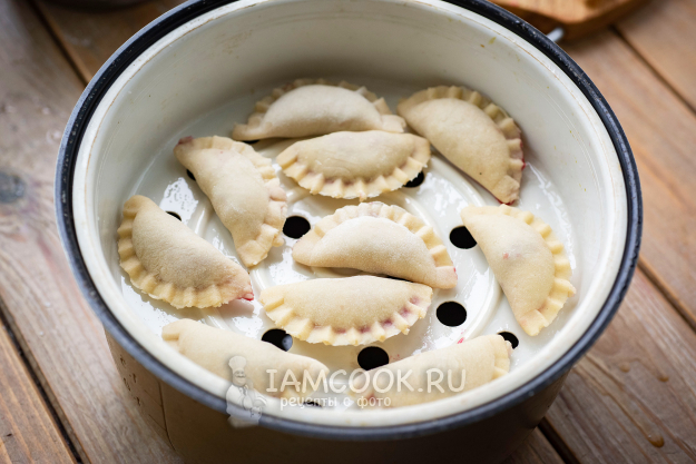 Традиционно вареники по-полтавски готовят на пару, но можно и просто отварить. Я половину порции приготовила в мультиварке на пару (программа "На пару", 15 минут) и половину порции отварила в сотейнике (7-8 минут после всплытия).