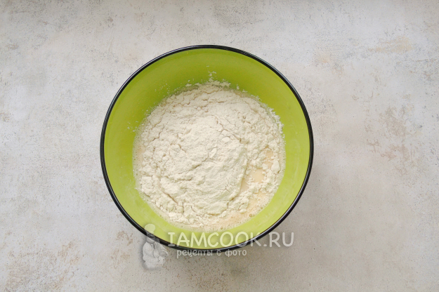 Постепенно насыпьте муку, каждый раз перемешивая венчиком.