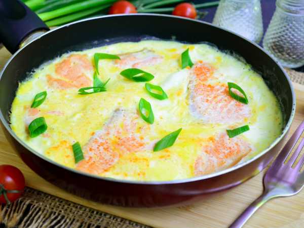 Соберите все необходимые продукты для приготовления омлета с курицей и сыром на сковороде.