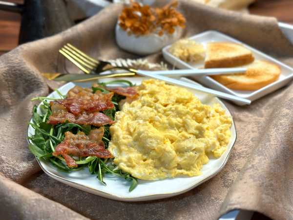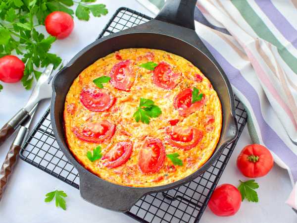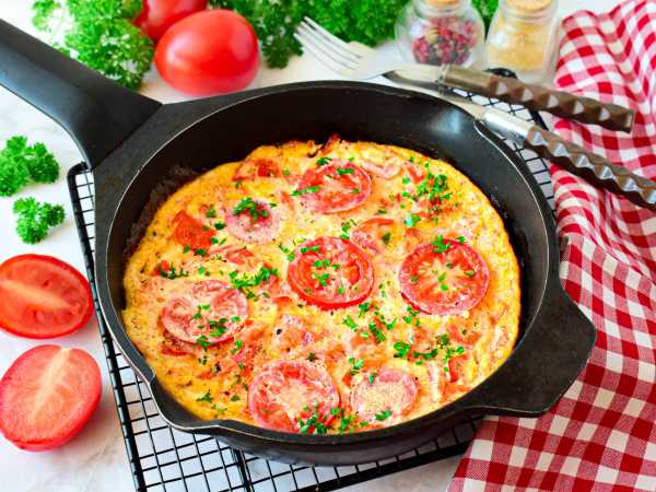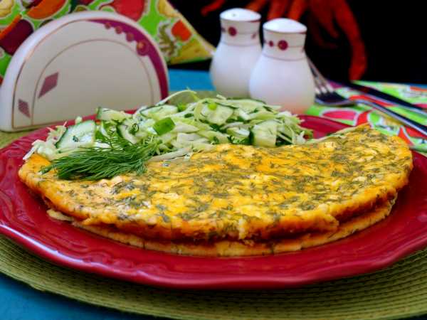 Вкуснейший завтрак на столе! Омлет с курицей и сыром получился очень вкусным! Приятного аппетита!