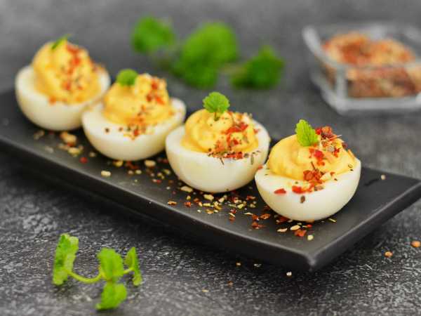 Яйца, фаршированные ветчиной и сыром, подавайте к столу в охлажденном виде - это вкусно и очень сытно!