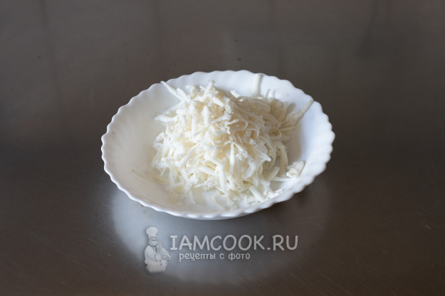 Пока жарятся перцы, потрём сыр на крупной тёрке.