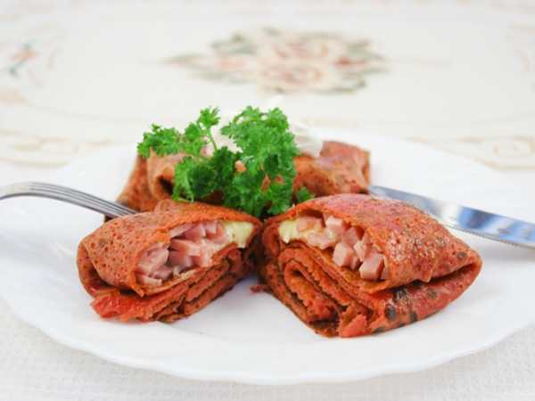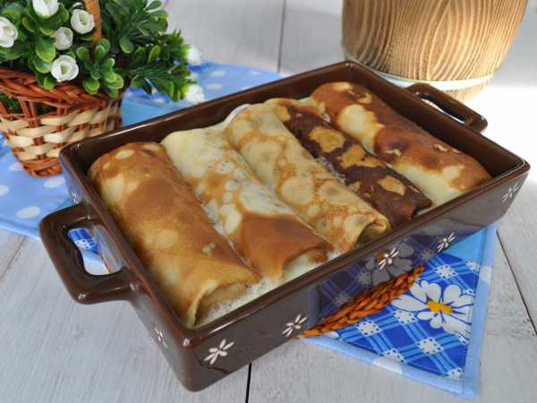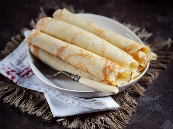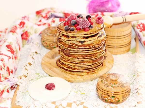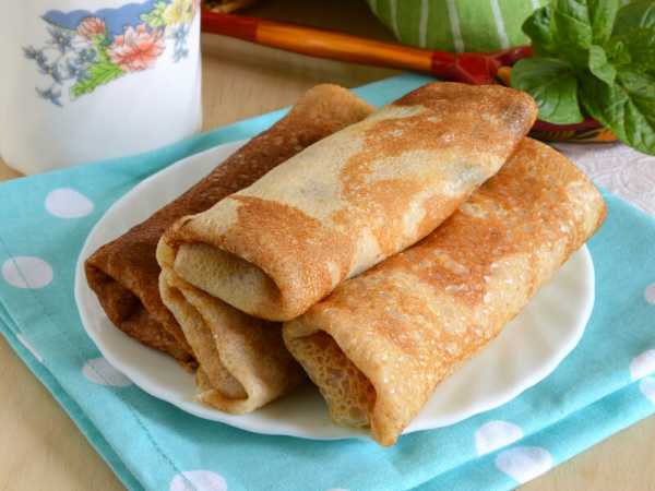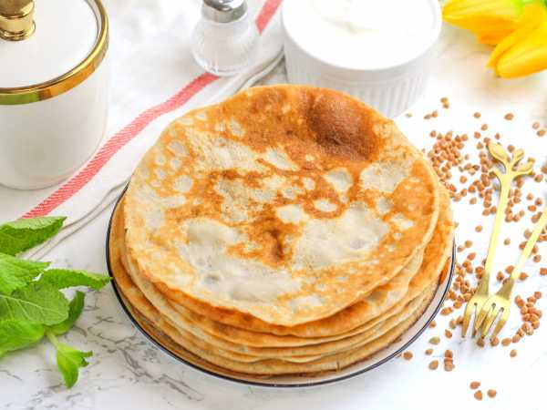 После чего прогрейте блинную сковороду, смажьте маслом в первый раз и влейте порцию теста. Округлите и обжарьте блин по 1-2 минуты с каждой стороны. Таким образом обжарьте и остальные блины.